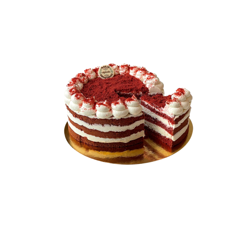 Ingrediente: mascarpone (corector de aciditate: acid citric), Smantana UHT (agent de ingrosare: caragenan; emulsifiant : mono- si digliceride ale acizilor grasi), zahar, oua, crema de branza [branza moale pasteurizata, sare, agent de ingrosare: guma din seminte de caruba)], faina alba de grau, dulceata de zmeura (acidifiant: acid citric), ulei vegetal de floarea soarelui, cacao (regulator de aciditate: carbonat de potasiu), lamaie, vanilie, colorant alimentar (*Rosu Ponceau 4R)